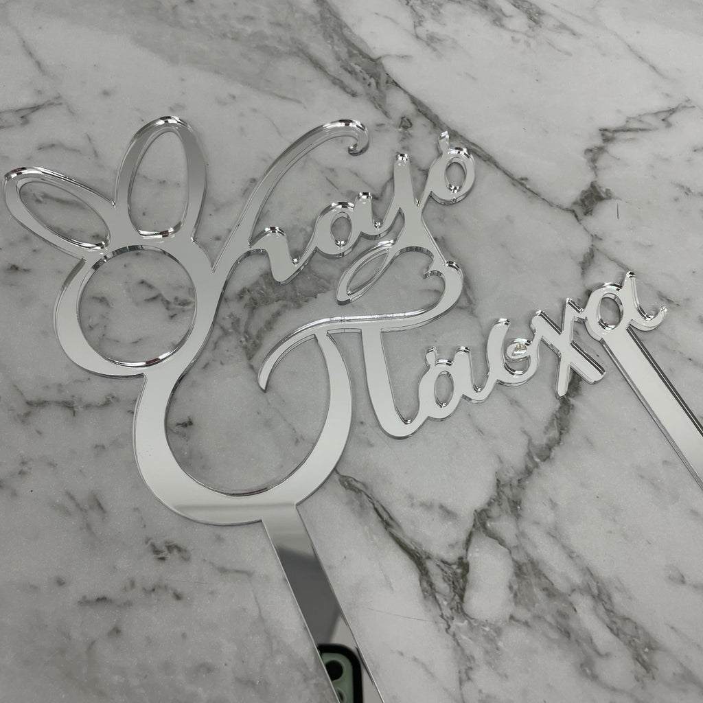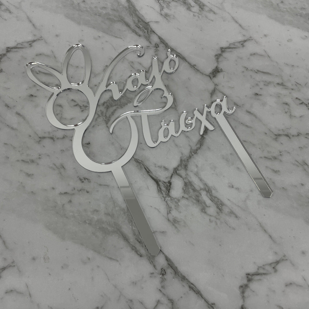 GREEK EASTER HAPPY EASTER KALO PASCHA CAKE TOPPER SILVER MIRROR ACRYLIC x 6