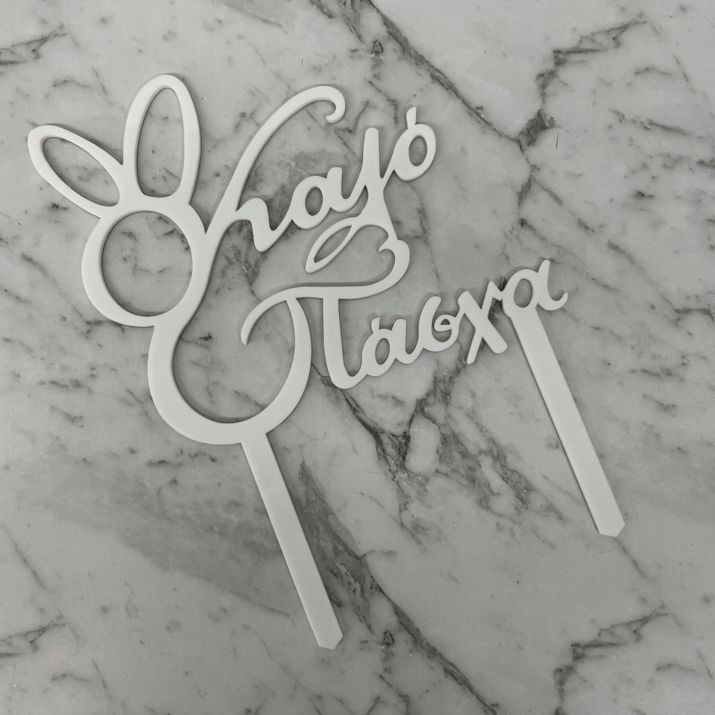 Decorate your Easter cake with our custom created Greek Easter Happy Easter Kalo Pascha cake topper.